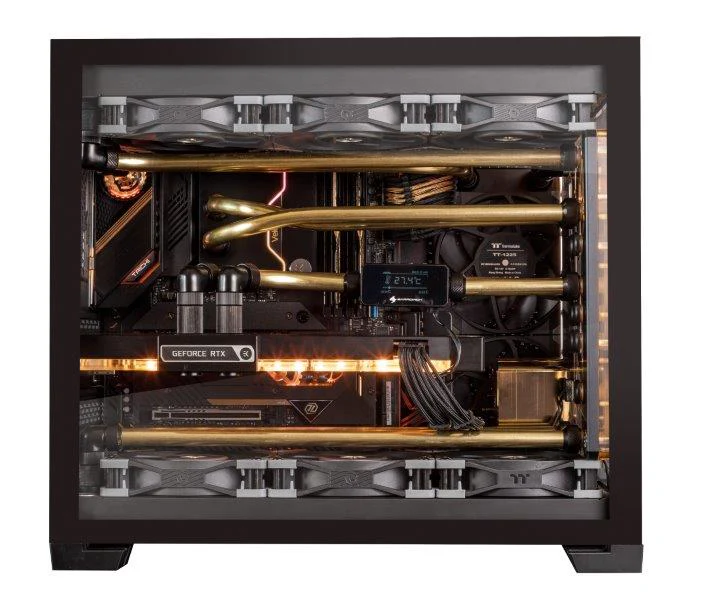 'PHOBOS' isn't just a gaming PC; it's a testament to the marriage of art and technology. It seamlessly blends unparalleled performance with the elegance of brass metal tubing, creating an avant-garde masterpiece that not only elevates your gaming experience but also graces your space with its mesmerizing presence. Whether you're a gaming enthusiast or appreciate fine art, PHOBOS is designed to captivate both your senses and imagination, pushing the boundaries of what a gaming PC can achieve powered by a unique watercooled list of components.